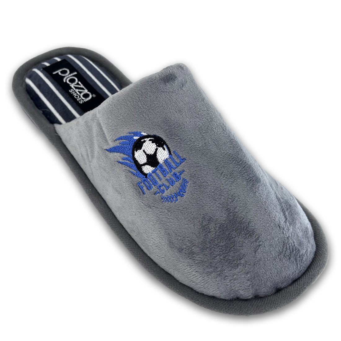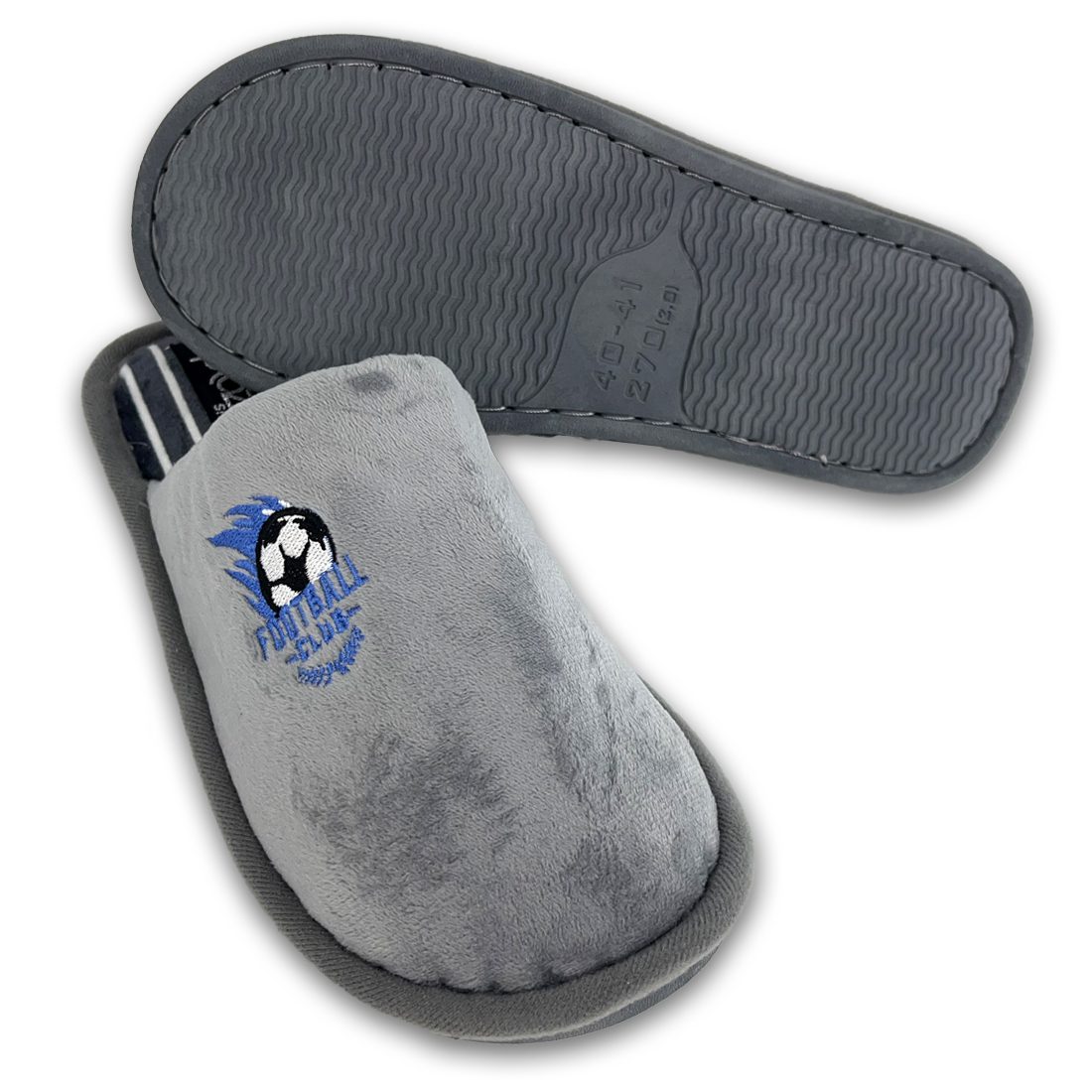 Ανδρικές χειμωνιάτικες παντόφλες με βελούδινη υφή και σχέδιο football μπάλα. Διαθέτει μαλακό πάτημα.