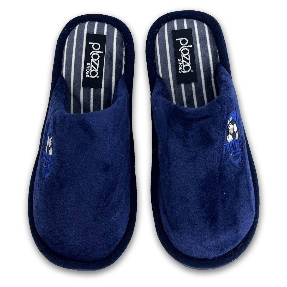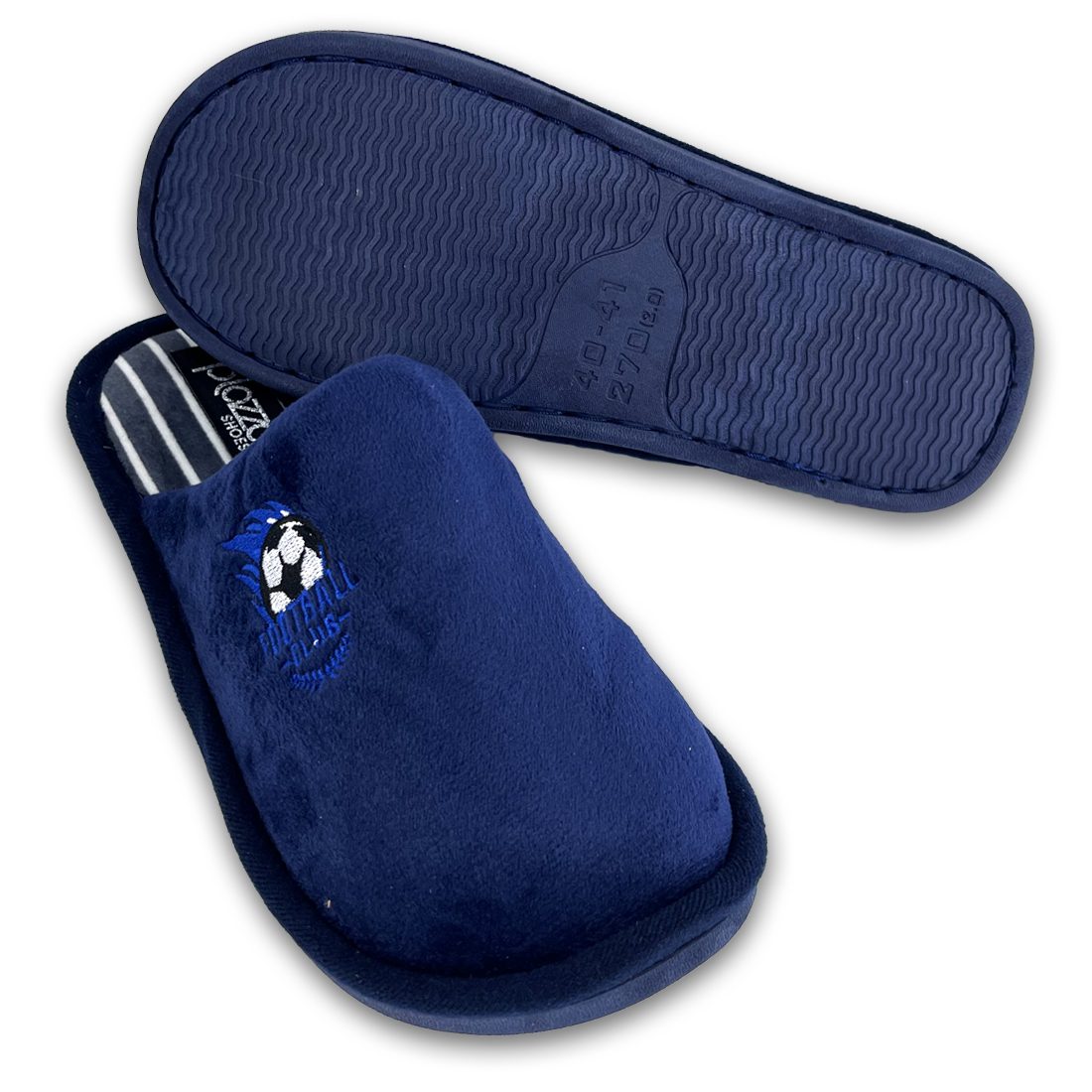 Ανδρικές χειμωνιάτικες παντόφλες με βελούδινη υφή και σχέδιο football μπάλα. Διαθέτει μαλακό πάτημα.