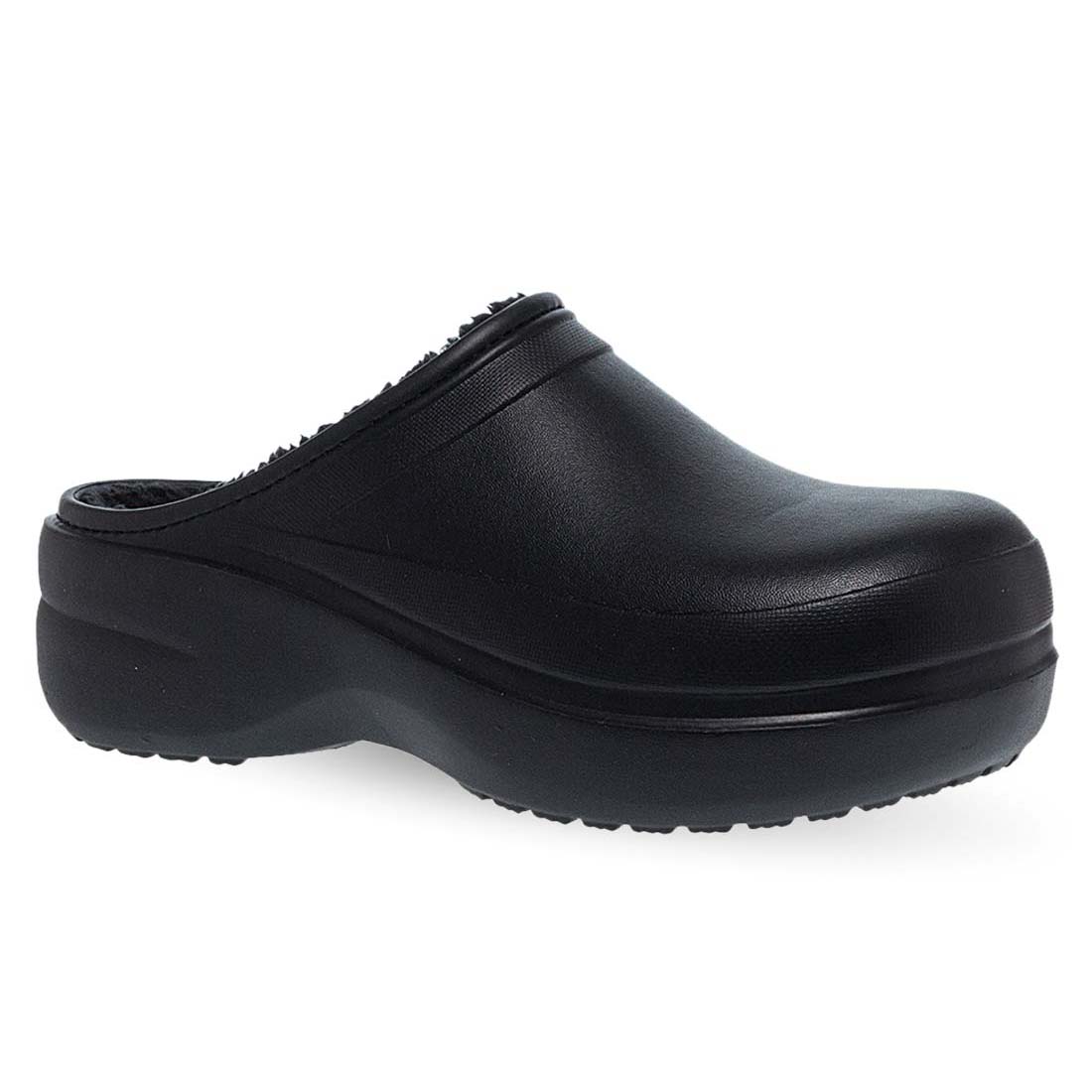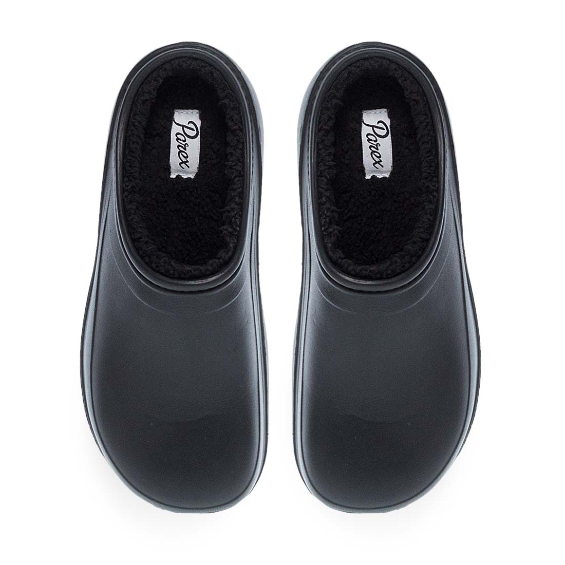 Γυναικεία χειμερινά clog Parex σε μαύρο και πούρο χρώμα, με εσωτερική επένδυση γούνας. Ζεστά, ελαφριά και αδιάβροχα.