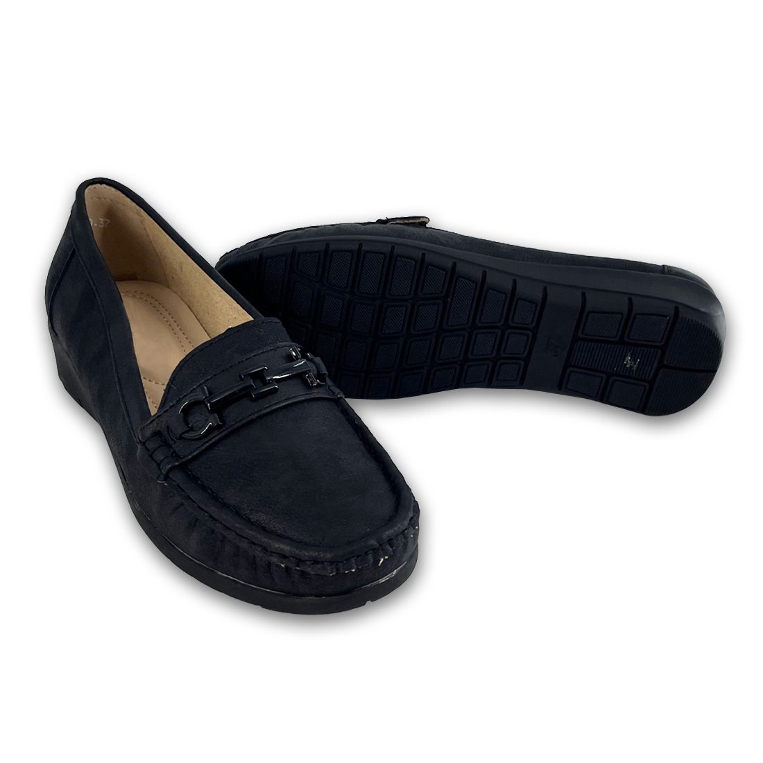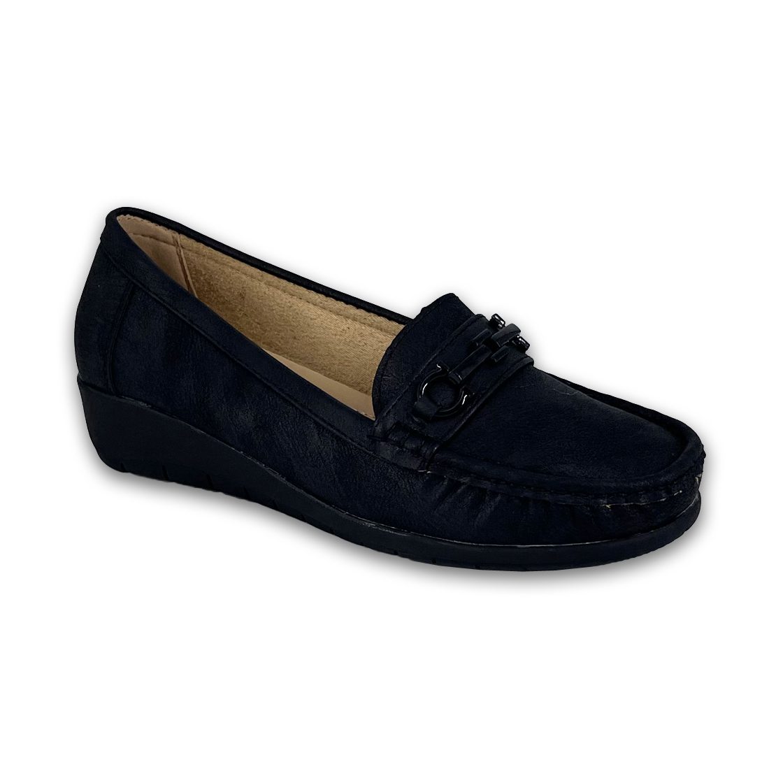 Μοκασίνι με εξωτερικές ραφές περιμετρικά, κομψό και άνετο για όλη τη μέρα. Διαθέτει διακοσμητική μεταλλική αγκράφα.