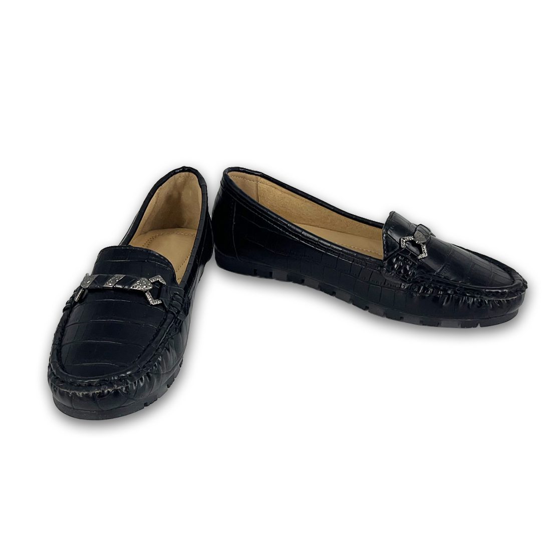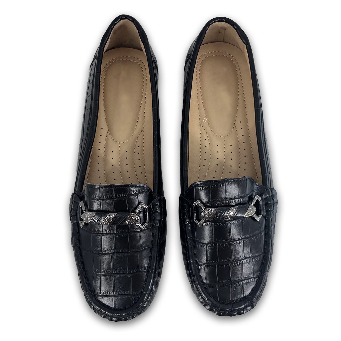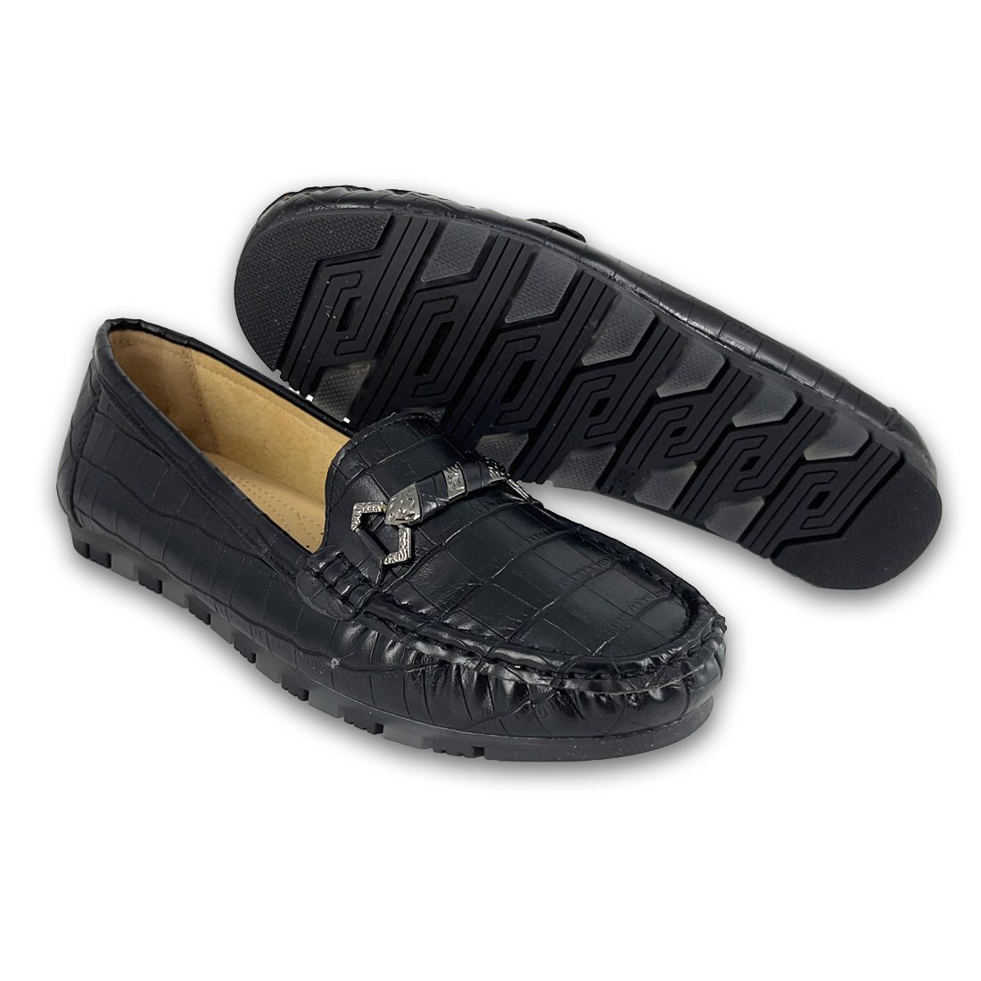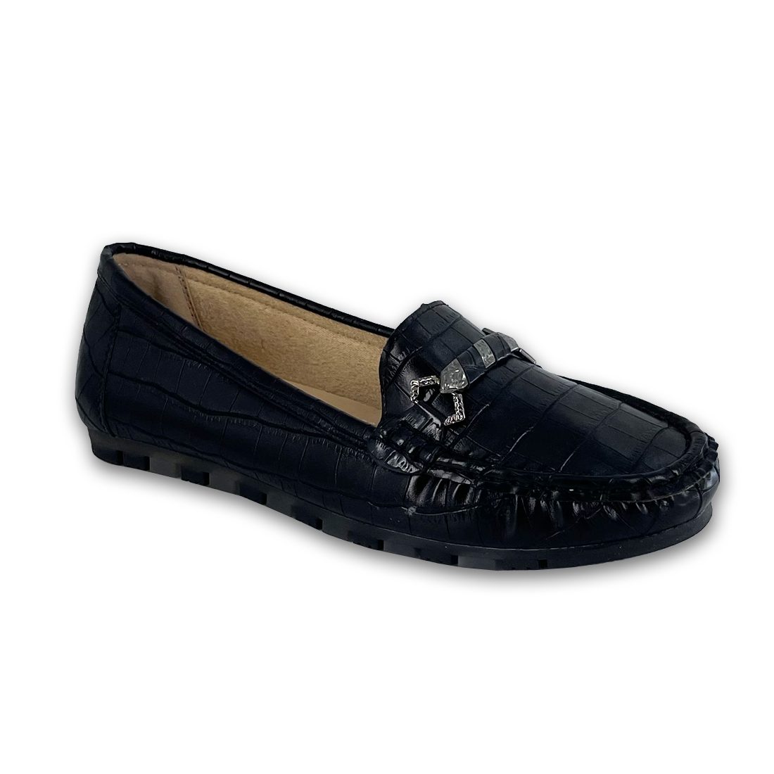 Γυναικείο μοκασίνι σε κροκό σχέδιο με διακοσμητική αγκράφα και εξωτερικές ραφές περιμετρικά, διαθέτει εξαιρετικά μαλακή σόλα για άνεση όλη τη μέρα.