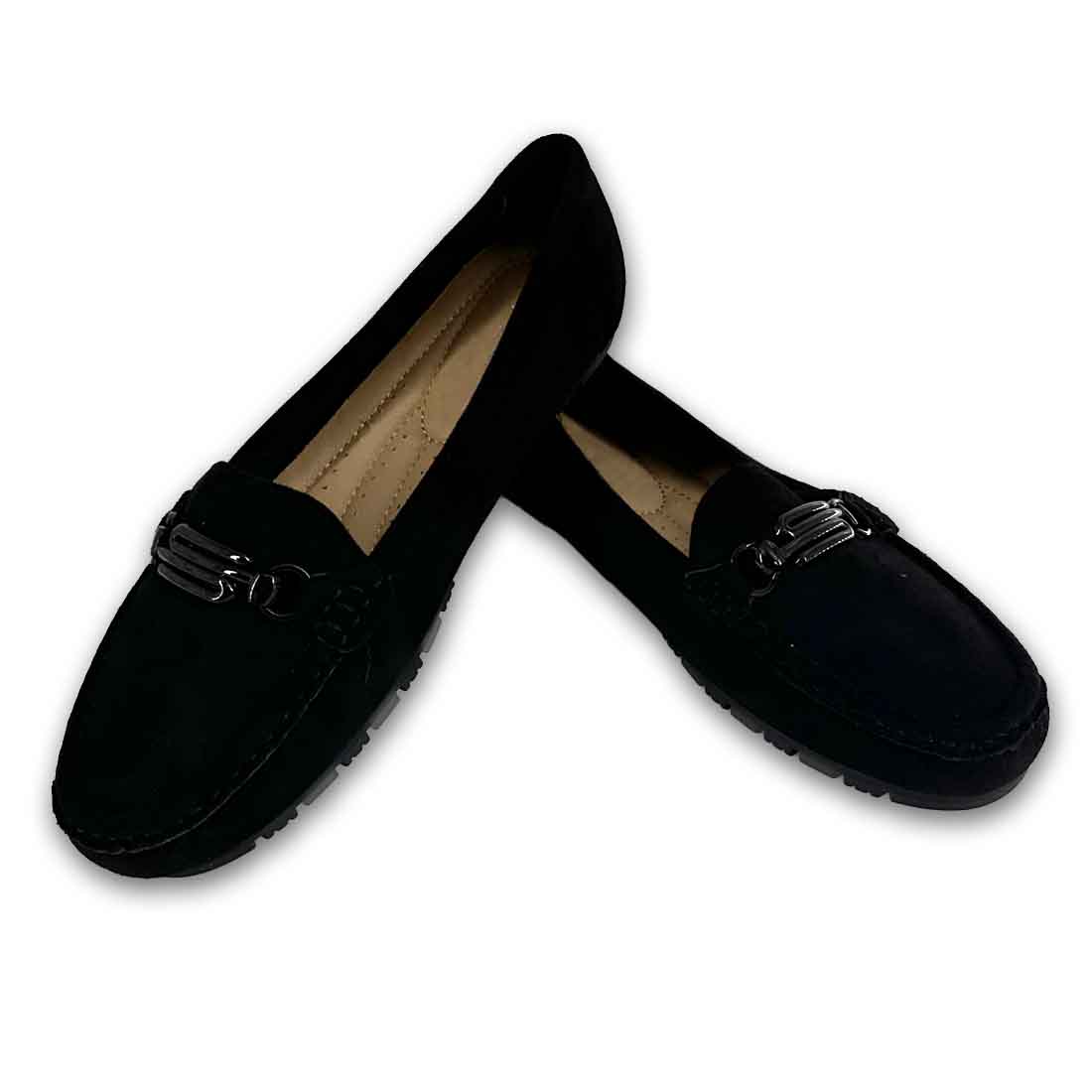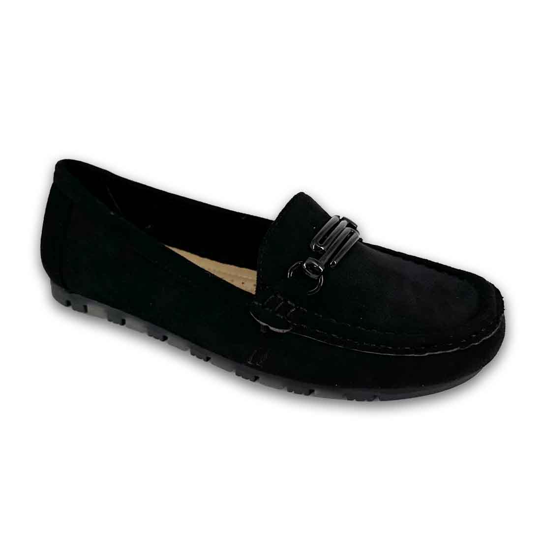 Γυναικείο μοκασίνι με διακοσμητική αγκράφα και εξωτερικές ραφές περιμετρικά, διαθέτει εξαιρετικά μαλακή σόλα για άνεση όλη τη μέρα.