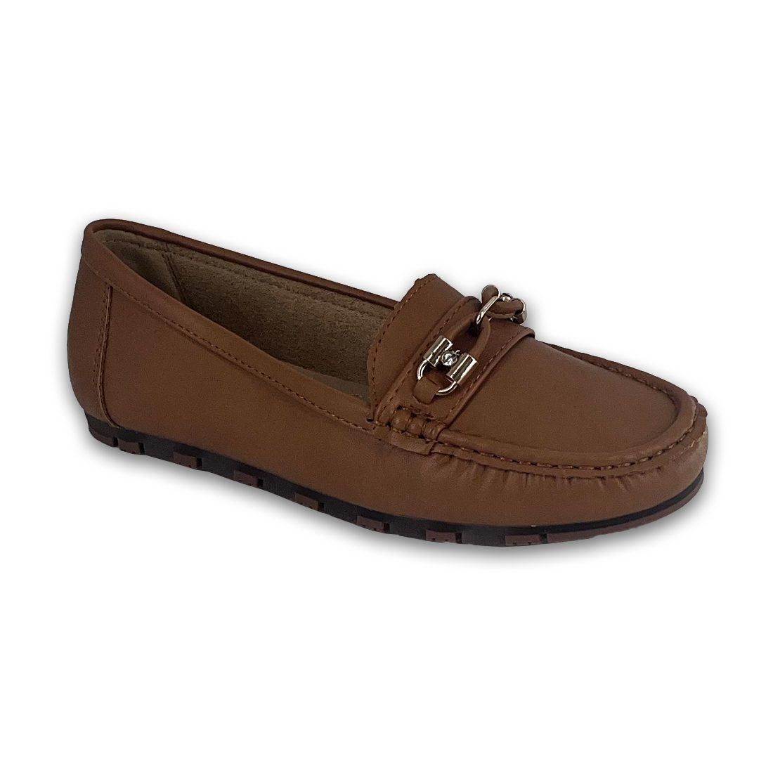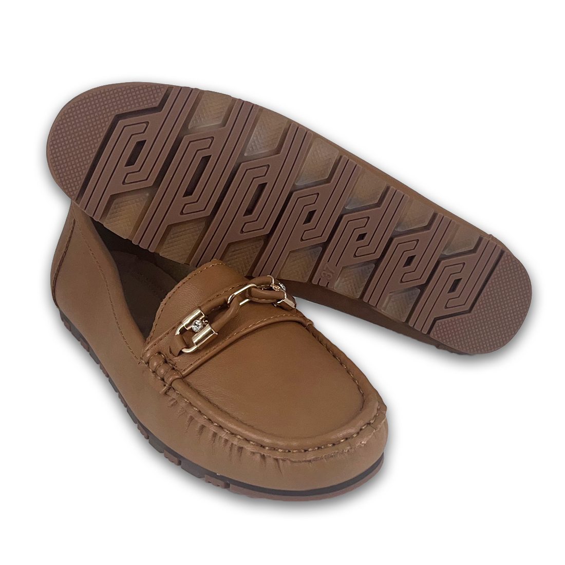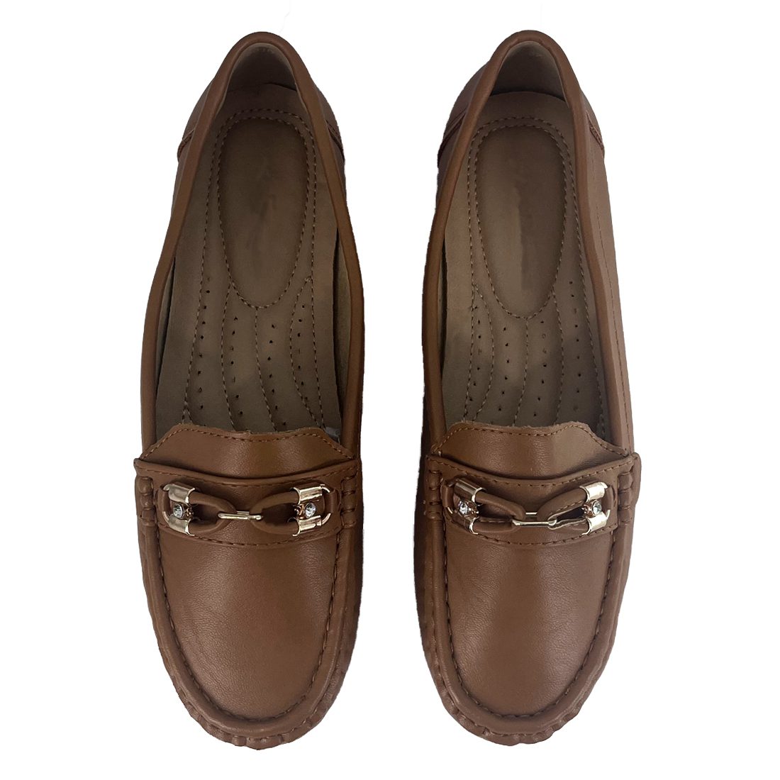 Γυναικείο μοκασίνι με διακοσμητική αγκράφα και εξωτερικές ραφές περιμετρικά, διαθέτει εξαιρετικά μαλακή σόλα για άνεση όλη τη μέρα.