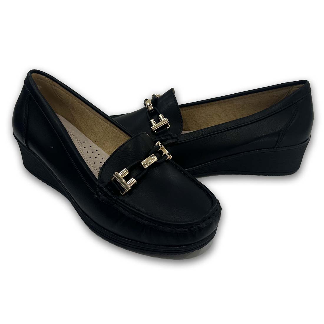 Γυναικεία μοκασίνια με διακοσμητική χρυσή αλυσίδα και αντιολισθητική ψηλή σόλα.