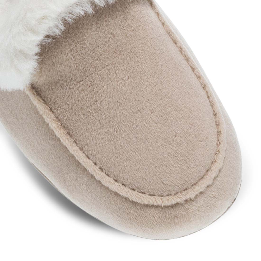 Κλειστές γυναικείες παντόφλες σπιτιού με λεπτομέρειες από συνθετική γούνα. Διαθέτουν μαλακό ύφασμα εξαιρετικά ζεστό και απαλό. Ξεκούραστο και άνετο πάτημα.