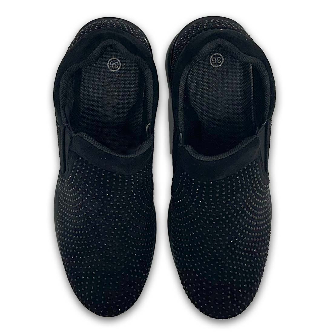 Γυναικείο sneaker slip on με στρας και τακούνι. Διαθέτει ελαστικότητα και λάστιχα στα πλαϊνά για εύκολη εφαρμογή. Ιδανική επιλογή για πολλούς συνδυασμούς ντυσίματος.