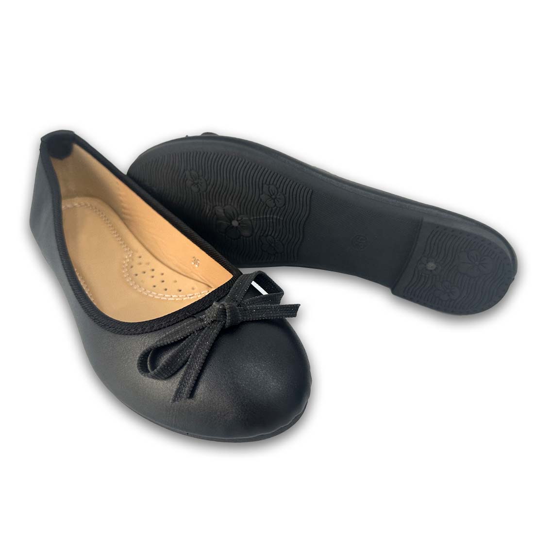 Γυναικεία μπαλαρίνα με στρογγυλή μύτη και φιογκάκι.