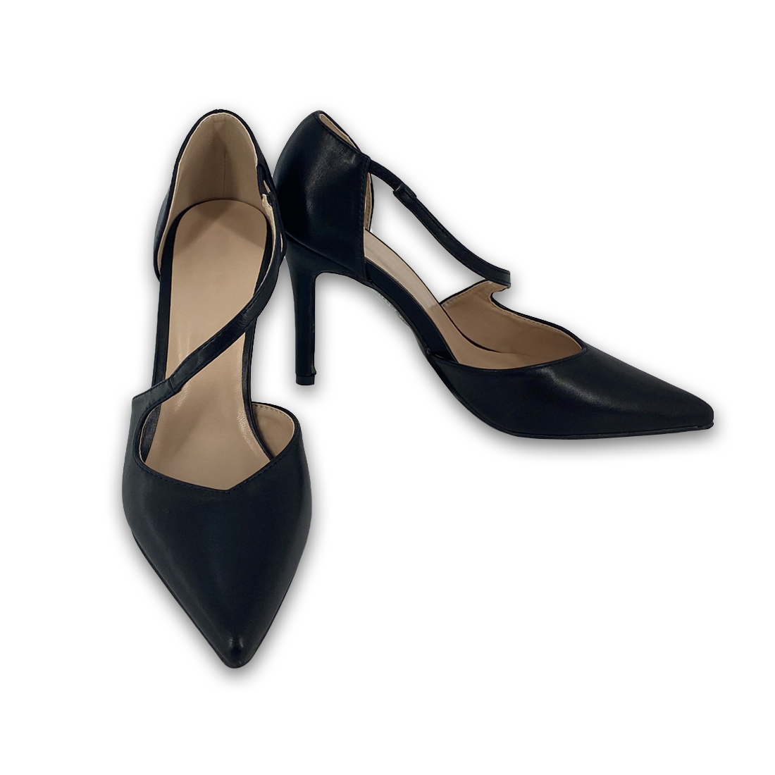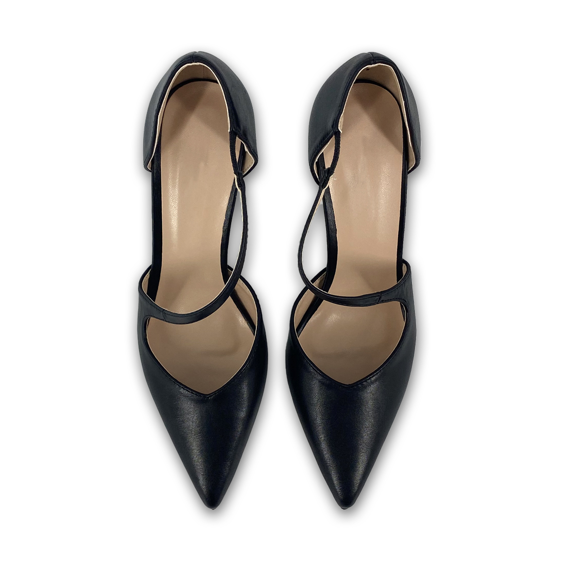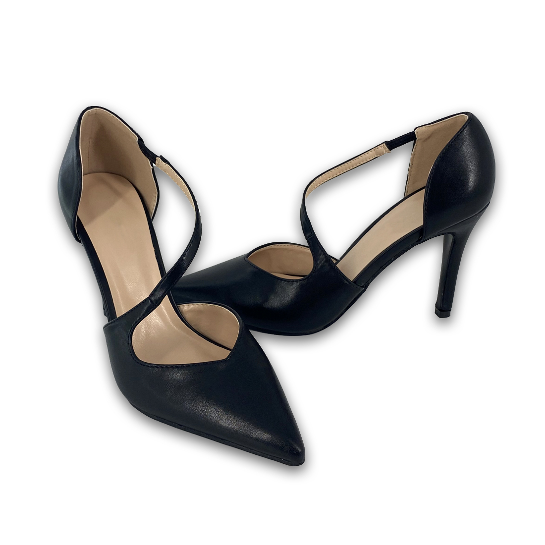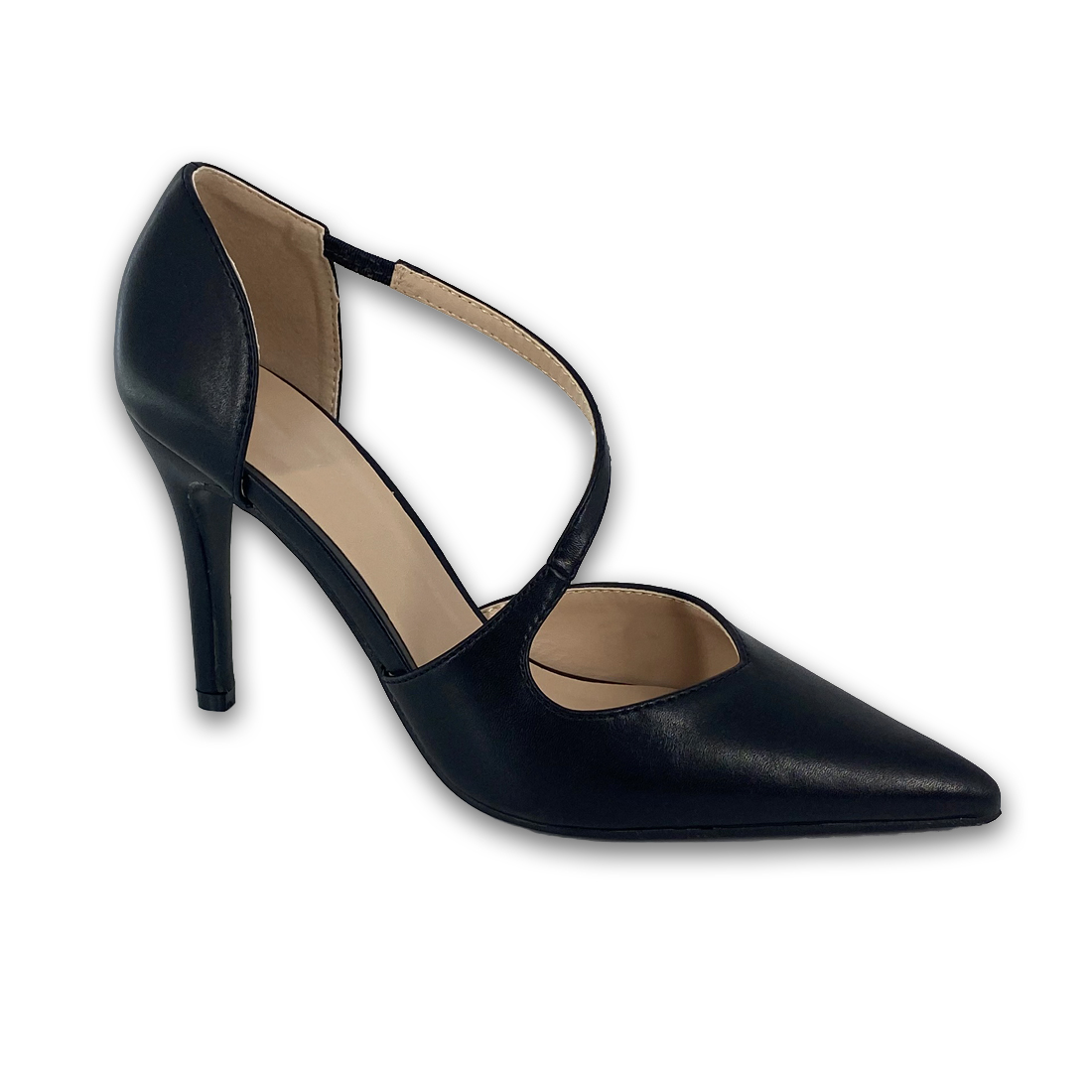Γυναικεία μυτερή γόβα με ψηλό και κομψό λεπτό τακούνι, ανοιχτή στα πλαϊνά. Διαθέτει λουράκι με λάστιχο για καλύτερη εφαρμογή. Ιδανική επιλογή για τα πρωινά και βραδινά σας σύνολα.