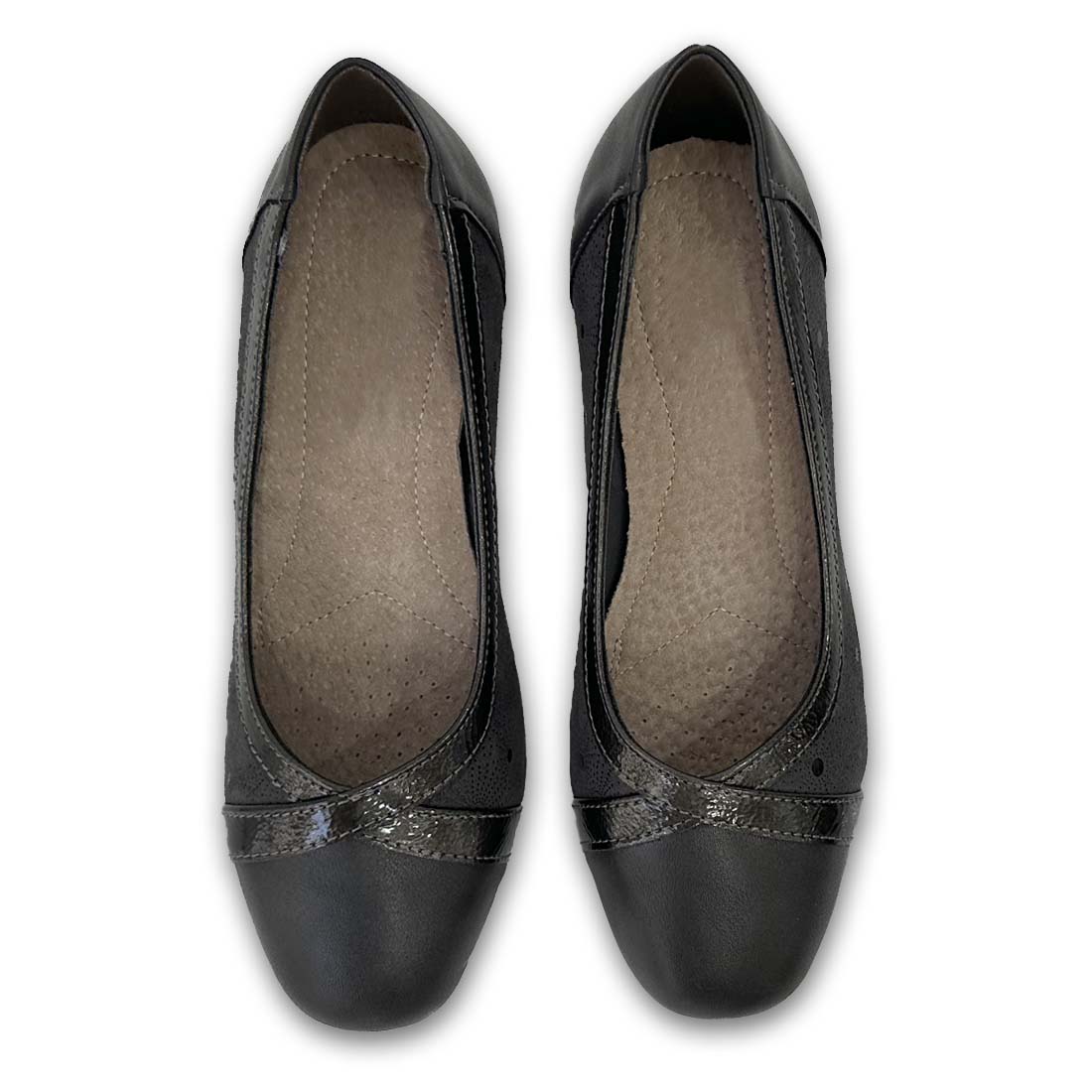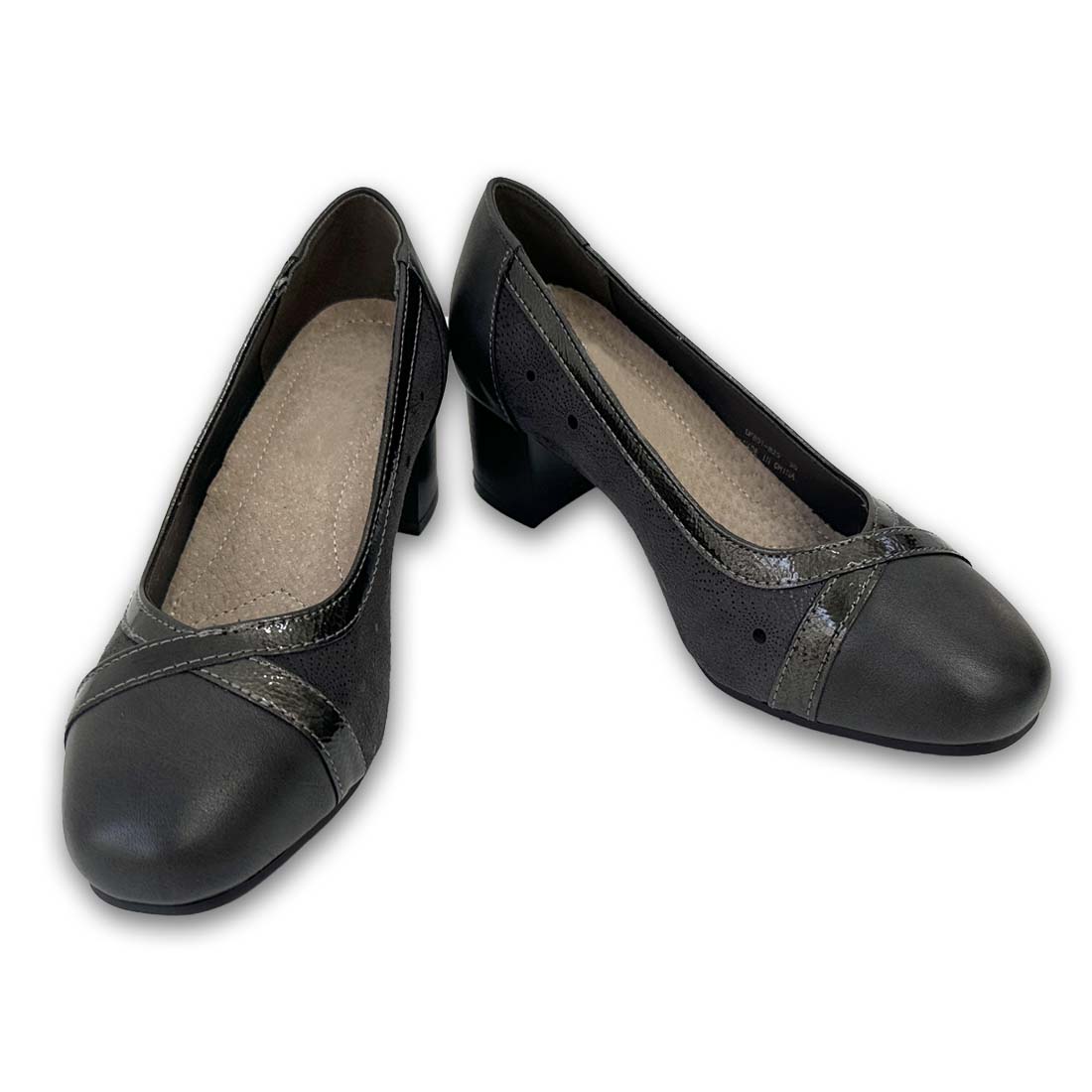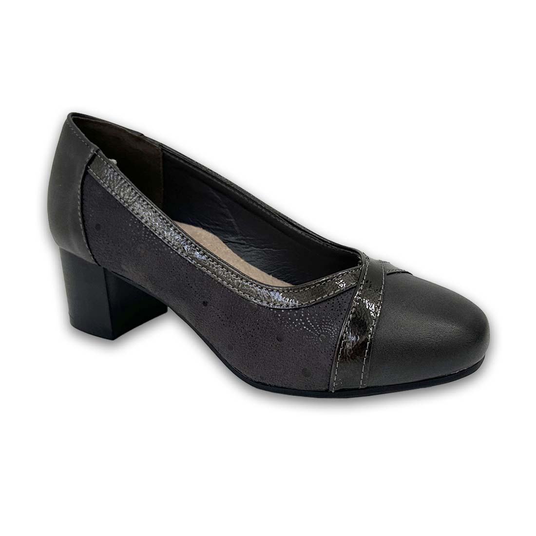 Γυναικεία κλασσική στρογγυλή γόβα με σταθερό χαμηλό τακούνι. Διαθέτει λουστρίνι λεπτομέρειες, ιδανική επιλογή για τα πρωινά και βραδινά σας σύνολα.