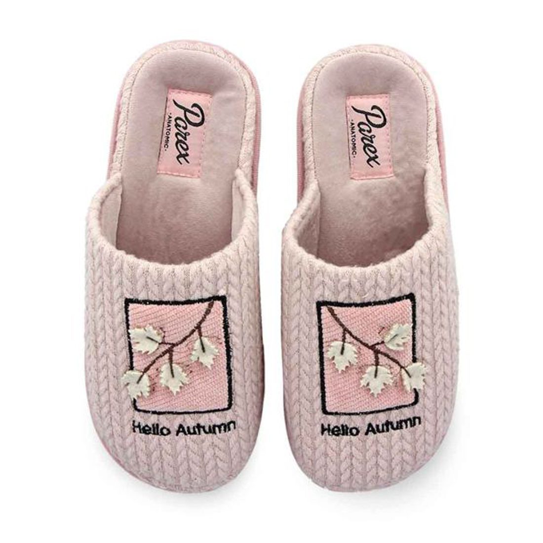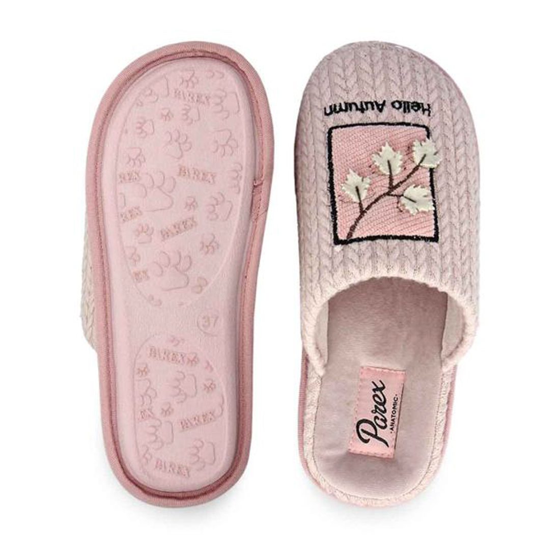 Πλεκτές παντόφλες Parex με διακοσμητικά φύλλα στο επάνω μέρος της με βελουτέ απαλή εσωτερική επένδυση. Διαθέτει μαλακό και αντιολισθητικό πάτο για άνεση όλη την ημέρα. Πλένονται στο πλυντήριο στους 30°C.