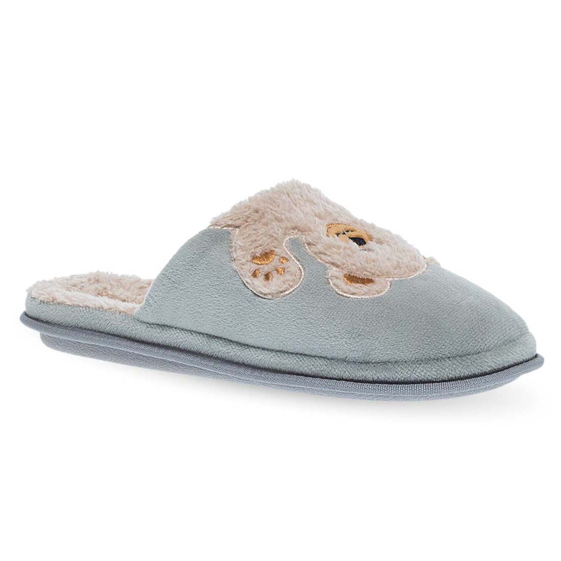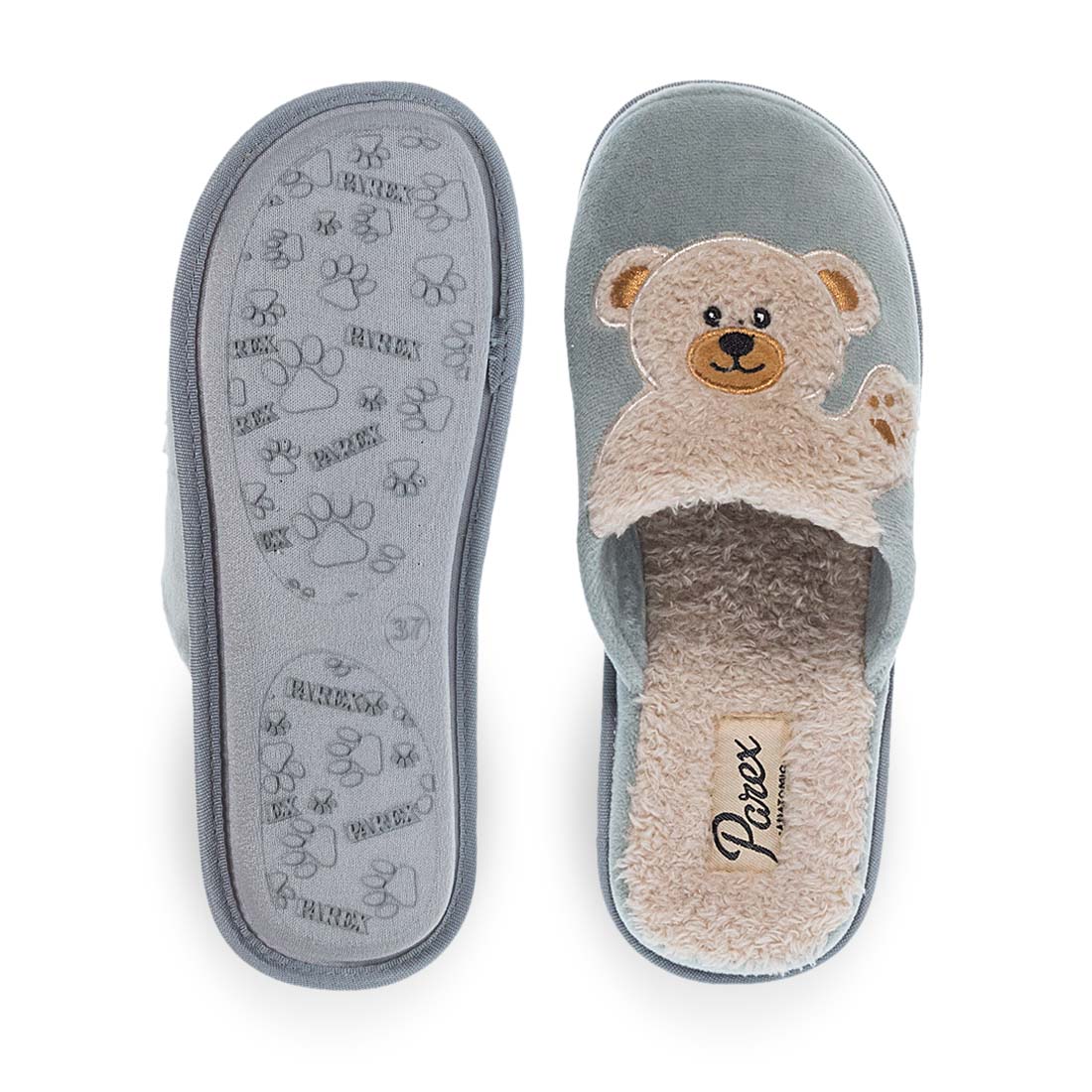 Γυναικείες παντόφλες Parex με σχέδιο αρκουδάκι στο πάνω μέρος της. Διαθέσιμες σε γκρι και σε ροζ χρώμα. Αναπαυτικές, ζεστές και άνετες για ξεκούραση κάθε μέρα, μια ιδανική επιλογή για το χειμώνα.