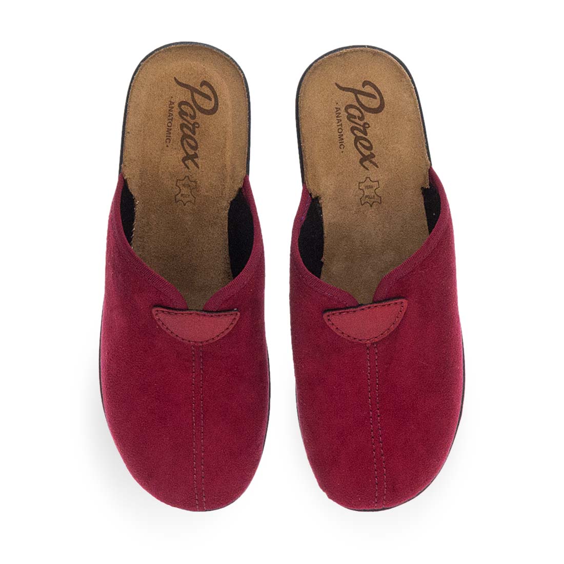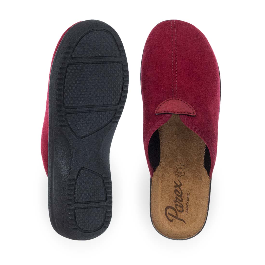 Γυναικείες παντόφλες Parex με εσωτερική επένδυση από ζεστό ύφασμα και δερμάτινο πάτο με τακούνι. Άνετες παντόφλες που χαρίζουν σωστή στάση σώματος.