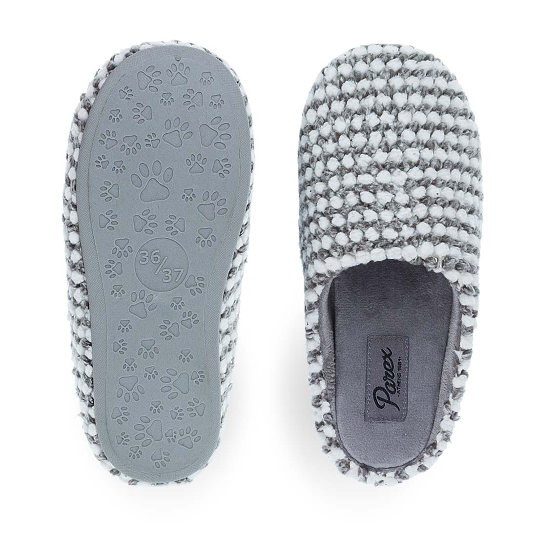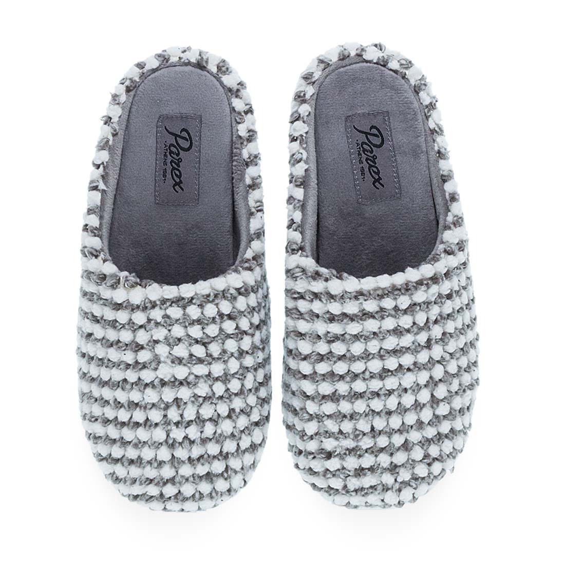 Γυναικείες παντόφλες Parex σε γκρι και ροζ απόχρωση με υφή πλεξούδας. Ζεστές, άνετες και αντιολισθητικές, ιδανικές για καθημερινή χρήση στο σπίτι.