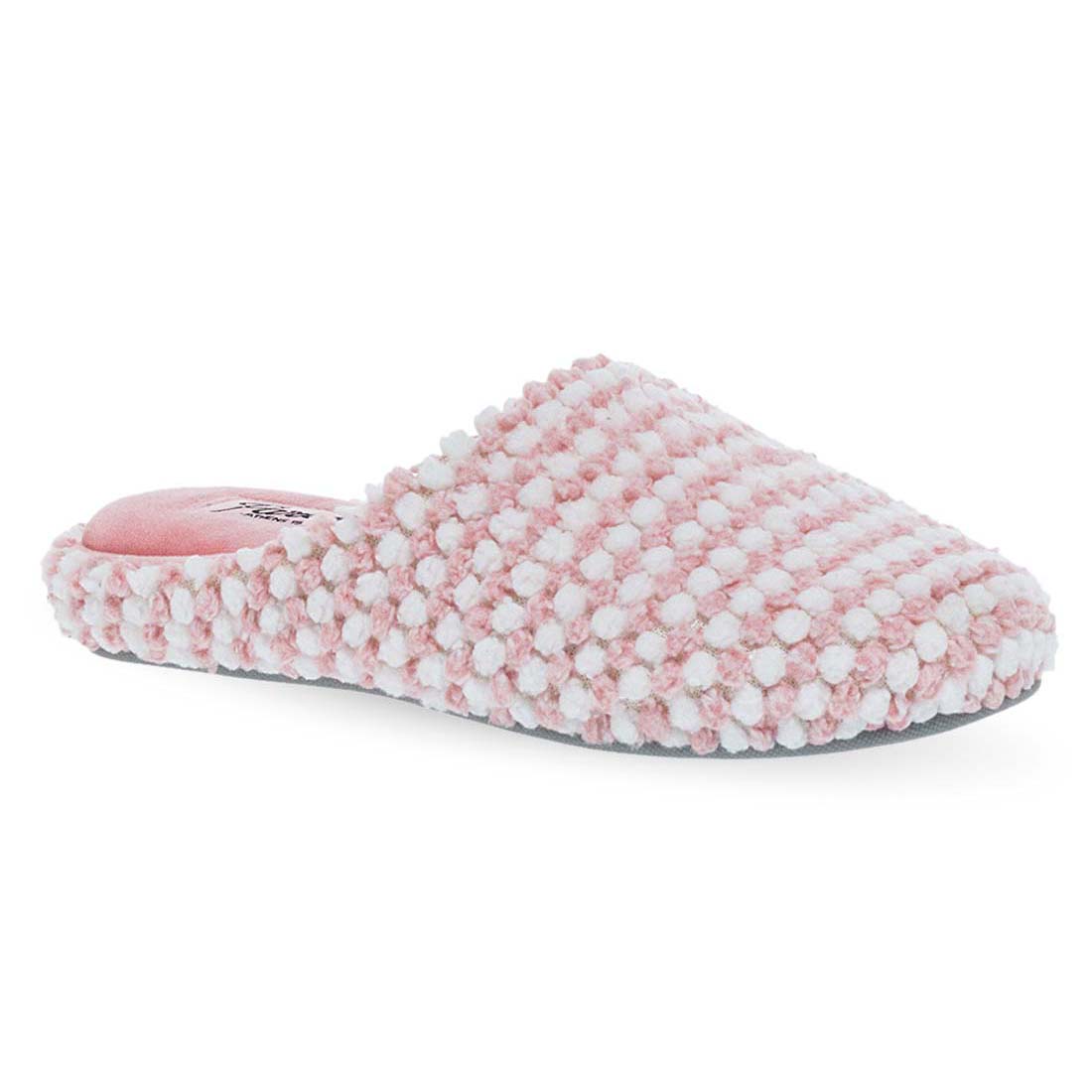 Γυναικείες παντόφλες Parex σε γκρι και ροζ απόχρωση με υφή πλεξούδας. Ζεστές, άνετες και αντιολισθητικές, ιδανικές για καθημερινή χρήση στο σπίτι.