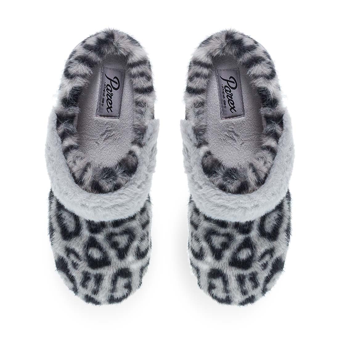 Γυναικείες παντόφλες Parex με λεοπάρ μοτίβο και απαλή γούνινη επένδυση. Μοντέρνες, άνετες και ξεχωριστές, για γυναίκες που αγαπούν το στυλ ακόμη και στις cozy στιγμές του σπιτιού. Διαθέσιμες σε καφέ και γκρι χρώμα.