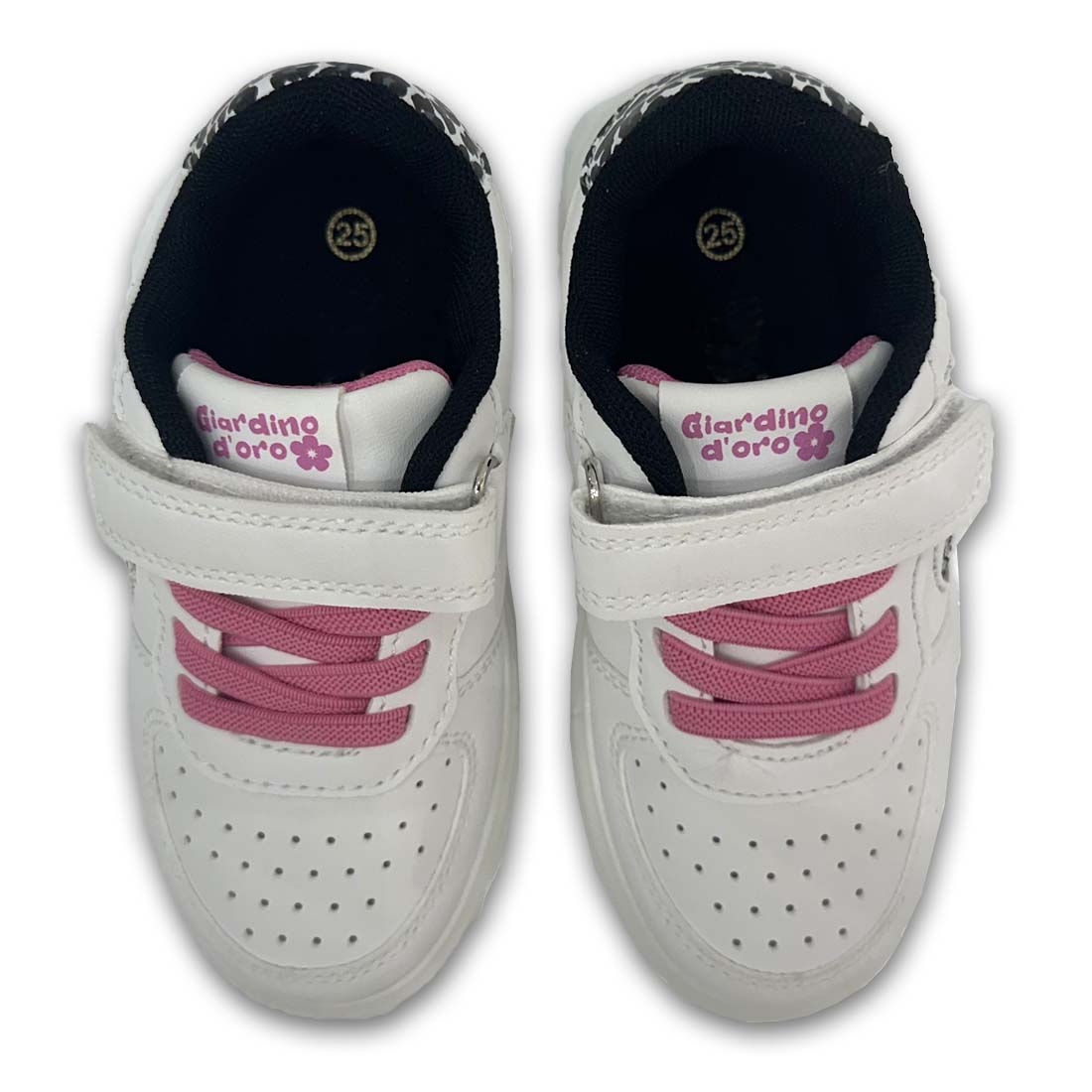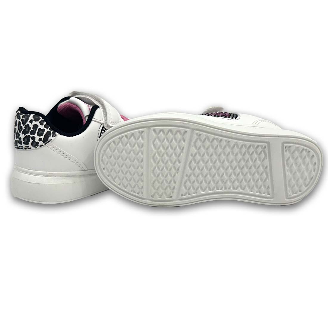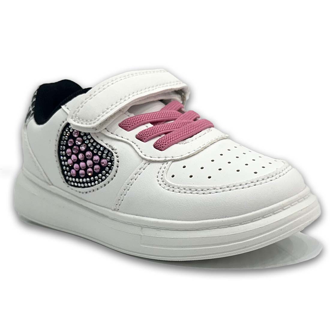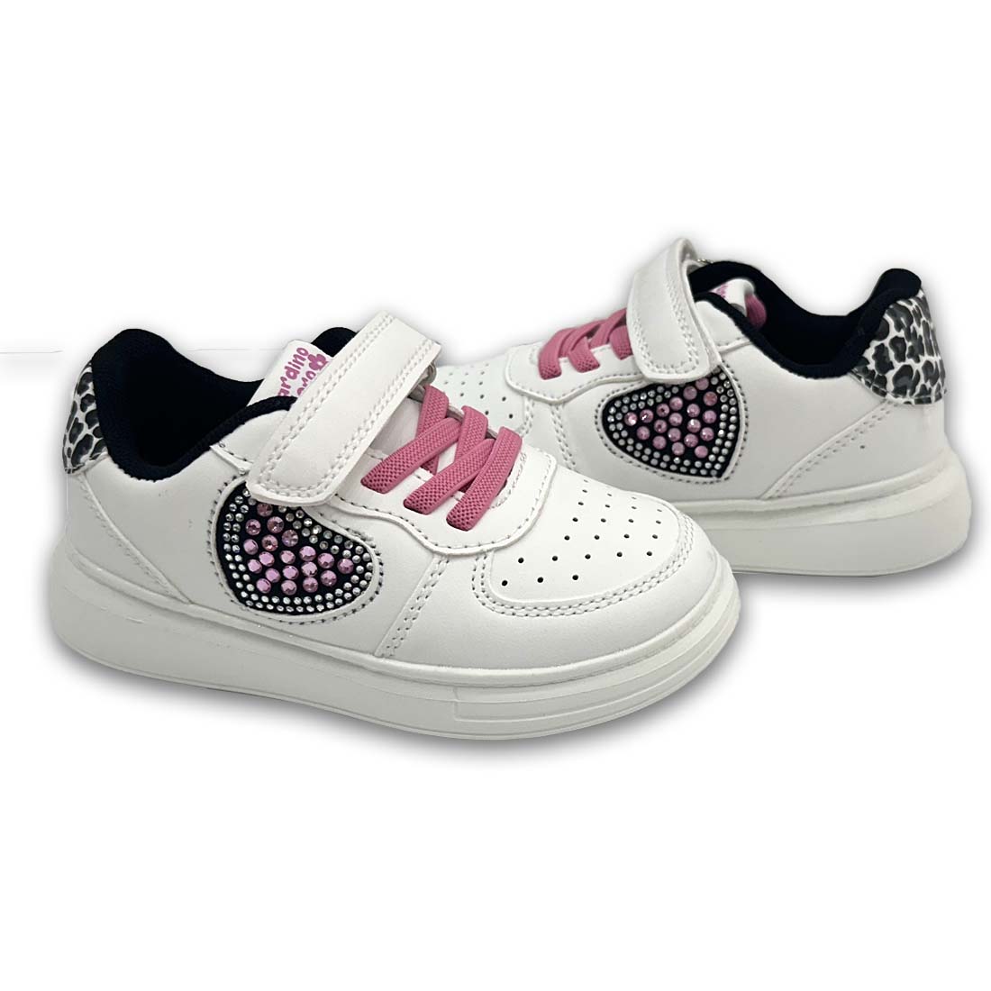 Παιδικό sneaker σε συνδυασμό χρωμάτων και με σχέδιο καρδούλα στην εξωτερική πλευρά. Διαθέτει velcro και κορδόνια από ελαστικό ύφασμα για εύκολη εφαρμογή.