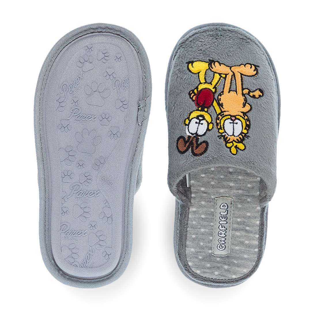 Παντόφλες με τον αγαπημένο μας γάτο Garfield. Διαθέσιμες σε γκρι και ροζ χρώμα για τους μικρούς μας φίλους! Οι παιδικές παντόφλες Garfield διαθέτουν μαλακό πάτημα και σόλα που δεν γλιστράει.