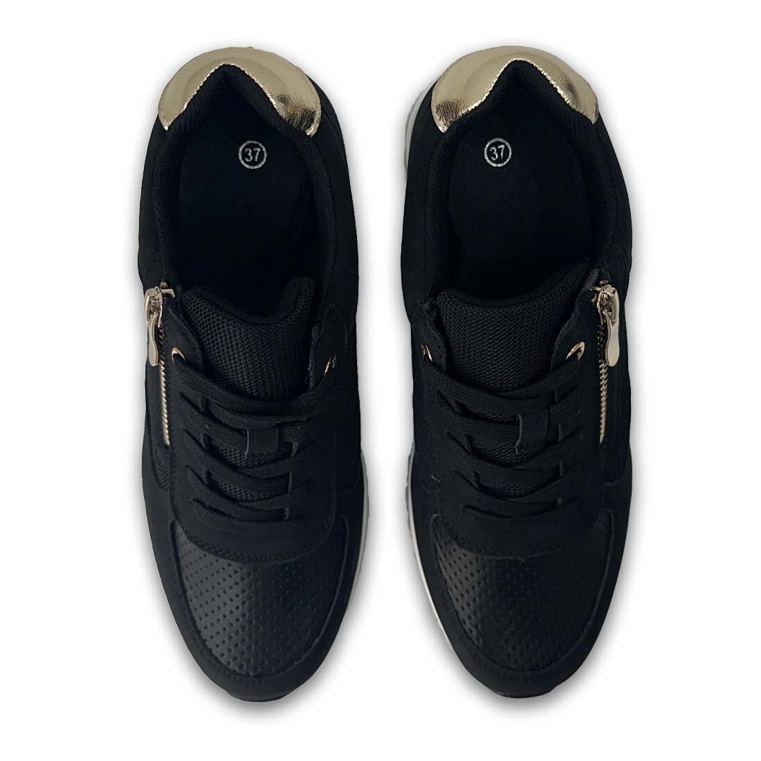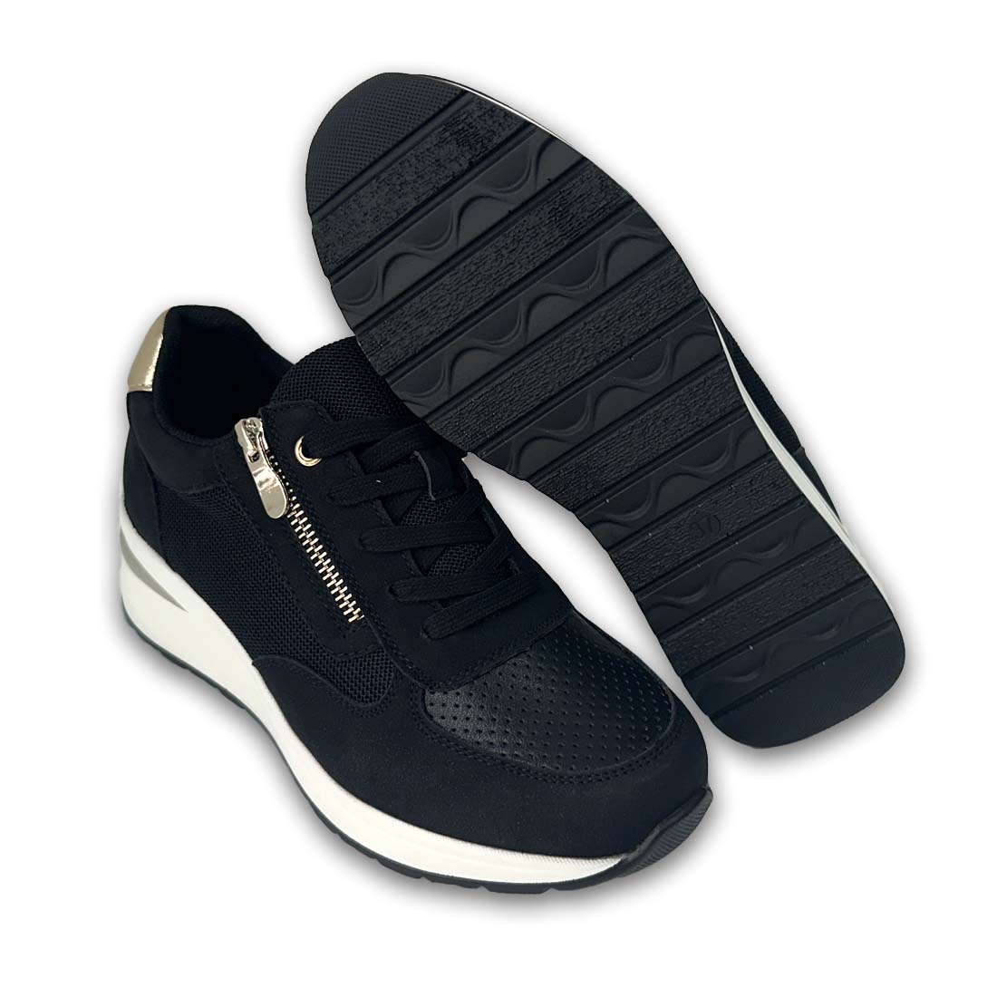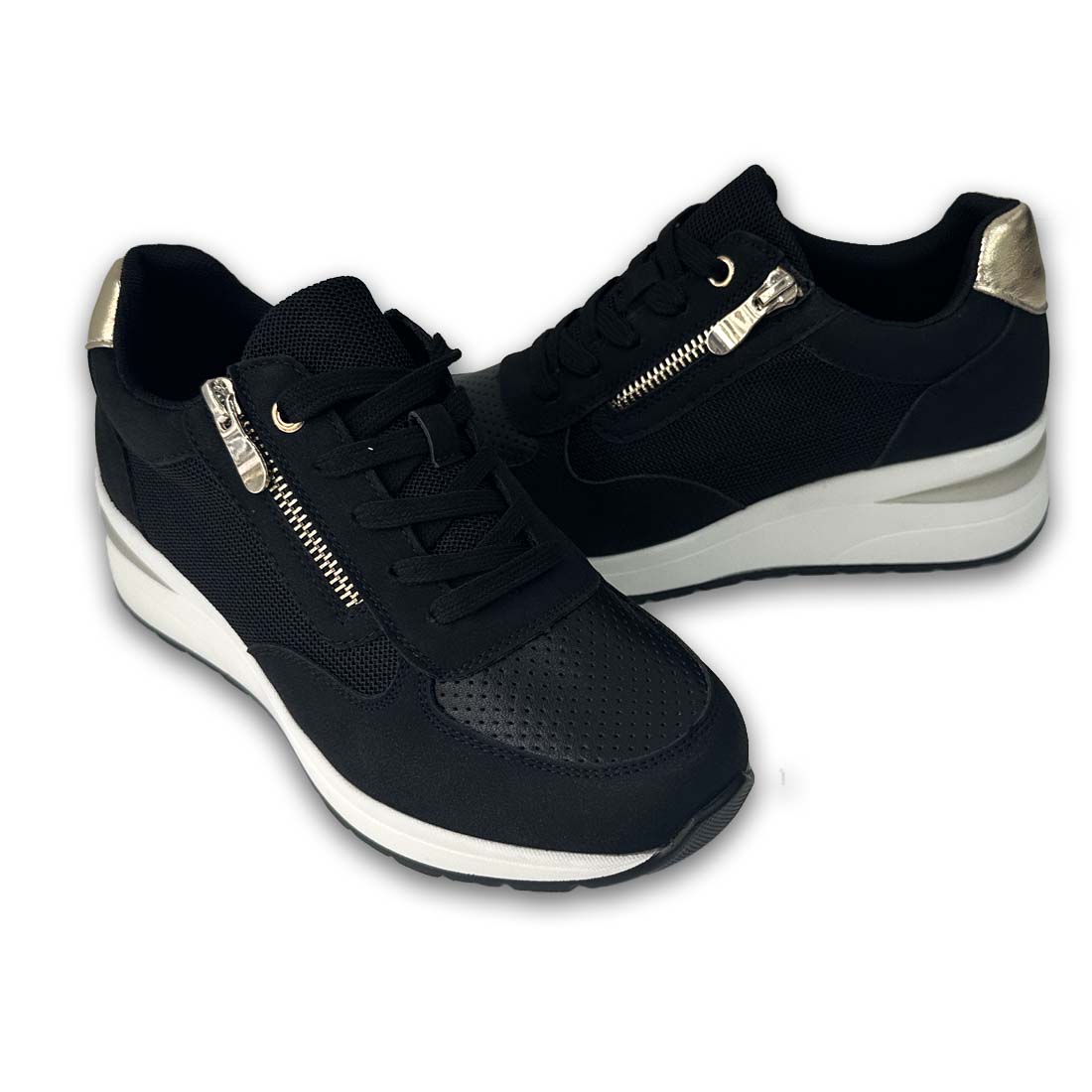 Γυναικείο sneaker με τακούνι και διακοσμητικό φερμουάρ στο πλαϊνό μέρος με χρυσές λεπτομέρειες. Ελαφρύ και κομψό, ιδανικό για όλες τις ώρες της ημέρας.