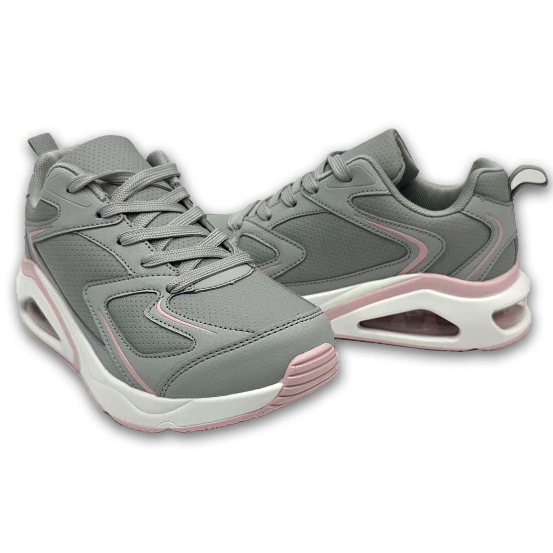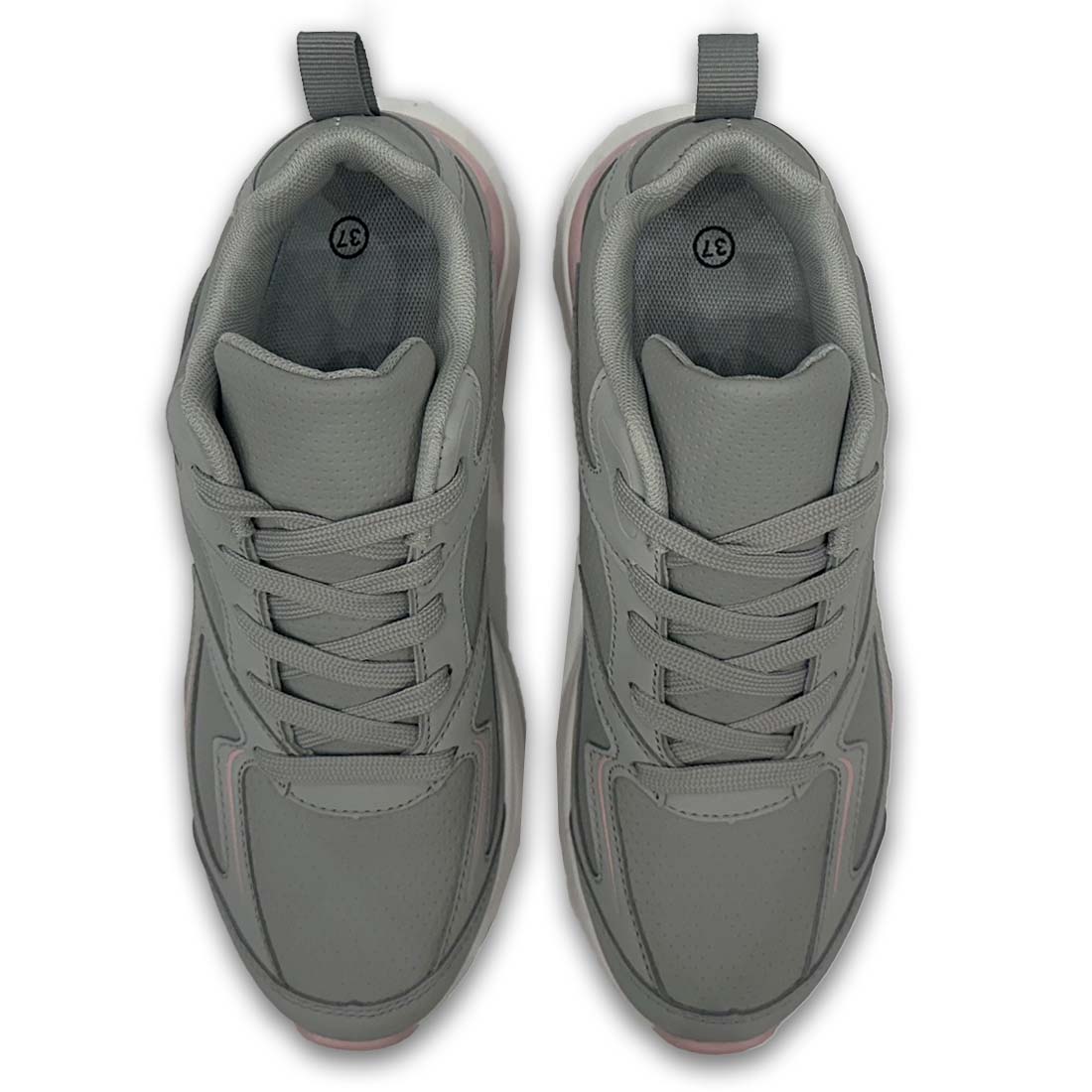 Γυναικείο sneaker με κορδόνια σε γκρι χρώμα με ροζ λεπτομέρειες. Διαθέτει αερόσολα και μαλακή σόλα με αντικραδασμική προστασία προσφέροντας άνεση όλη μέρα.